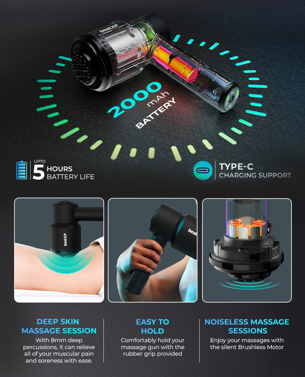 beatXP Blaze Pro Handheld Full Body Massager is a compactly designed lightweight massage machine for pain relief. Blaze Pro body massager takes a short session of a deeply relaxing massage to make you experience the power of this efficient device. The massage machine is equipped with a strong & high torque motor, to deliver noiseless and relaxing body massage. Compact design allows you to access difficult-to-reach regions of your body and can use it as a back massager too.
