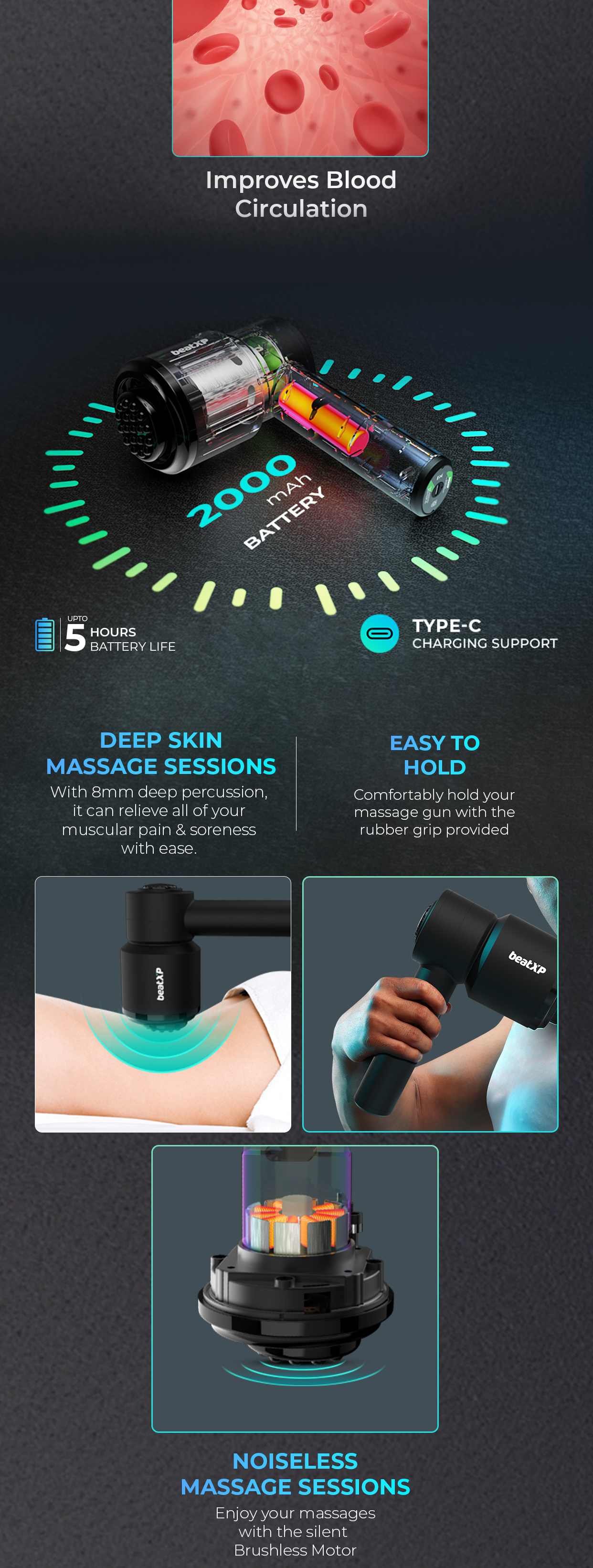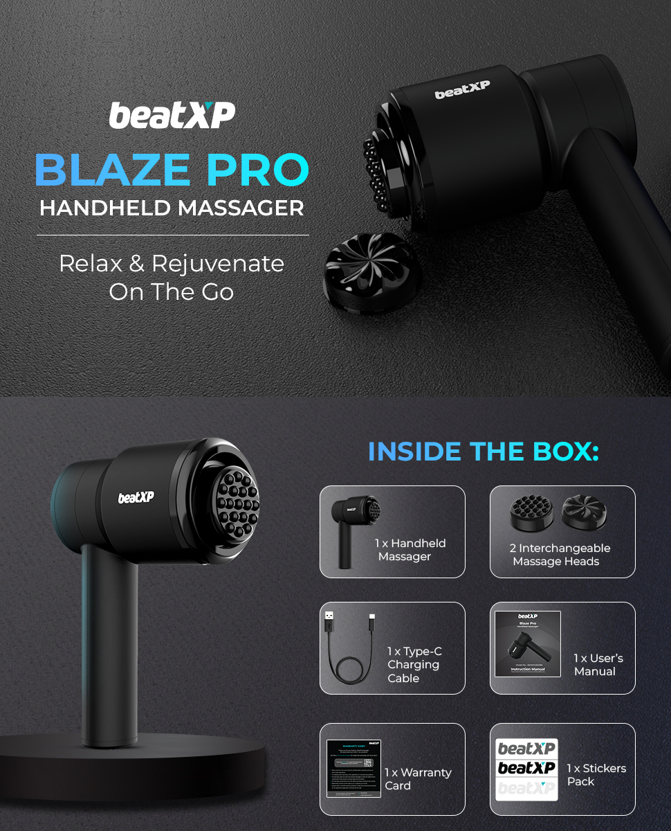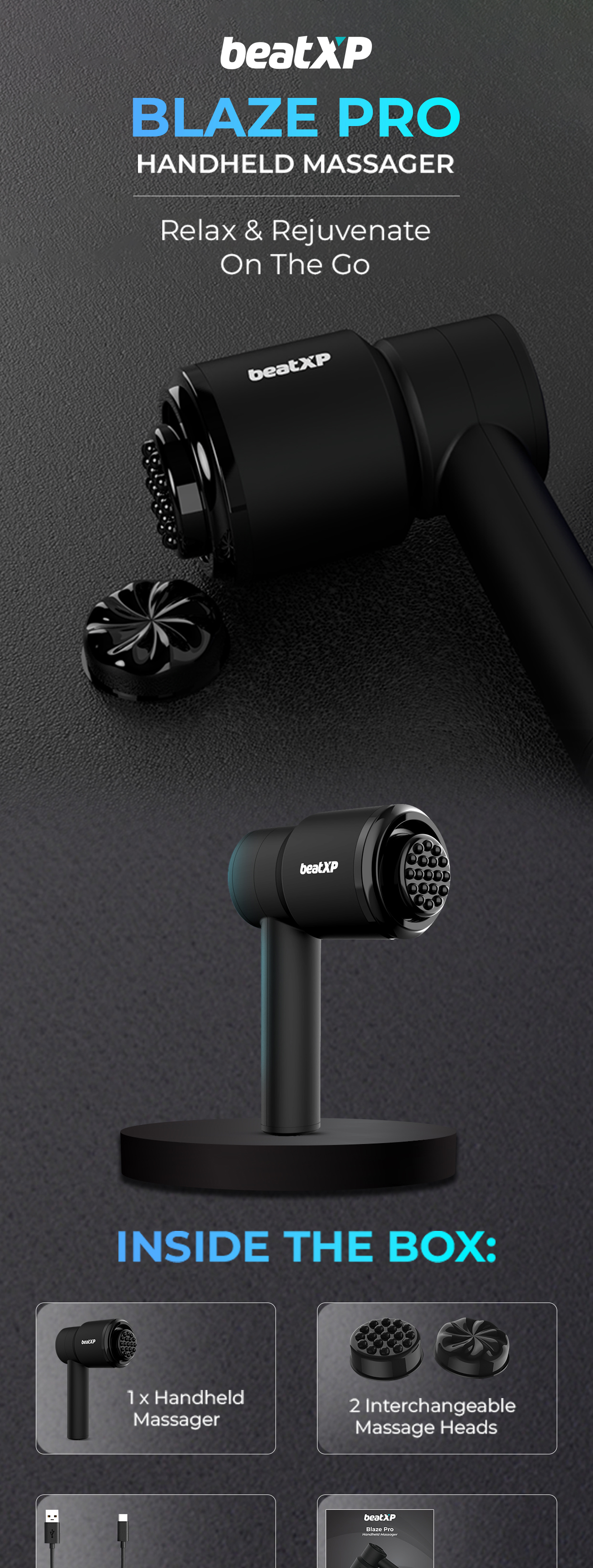 beatXP Blaze Pro Handheld Full Body Massager is a compactly designed lightweight massage machine for pain relief. Blaze Pro body massager takes a short session of a deeply relaxing massage to make you experience the power of this efficient device. The massage machine is equipped with a strong & high torque motor, to deliver noiseless and relaxing body massage. Compact design allows you to access difficult-to-reach regions of your body and can use it as a back massager too.