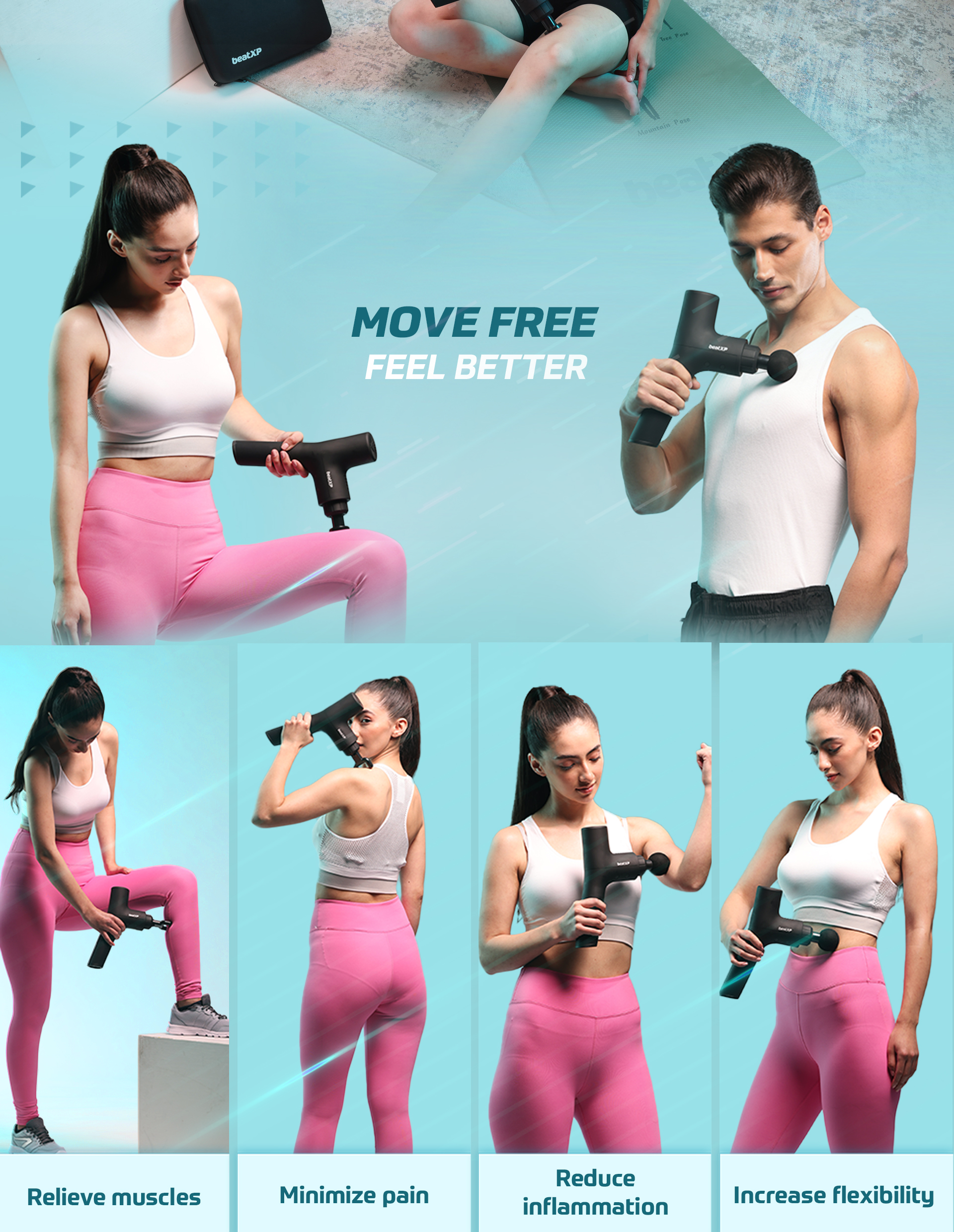 All that can be easily controlled with the one-button smart control provided at the bottom of the massager. The T-Shape double handle design of the massage gun along with its rubber grip ensures better hold, easier pressure application, and more possibilities while treating the difficult-to-reach areas ensuring less stress exerted on your hands while using the device. The handle provided is odourless, sweat-resistant and has an anti-microbial coating. The massager weighs 750gm and comes with an additional hard carrying case thus making it super easy to carry to the gym or at work.