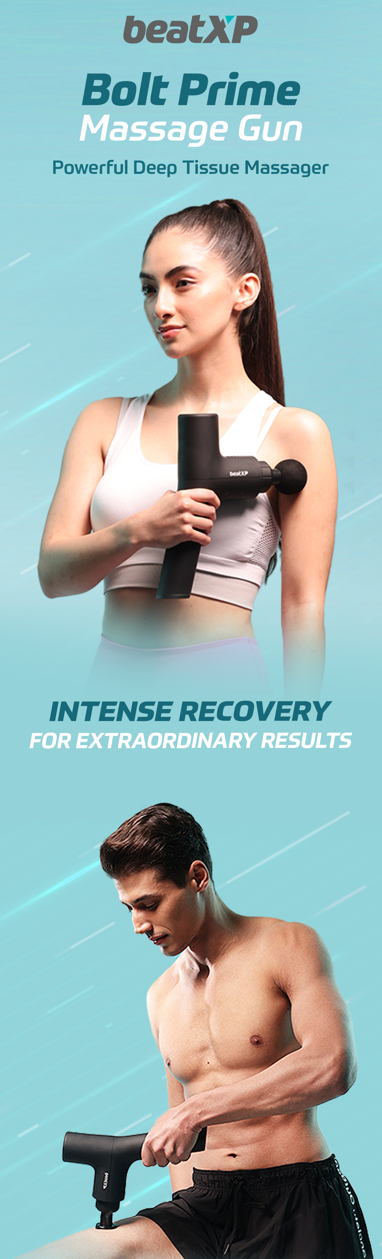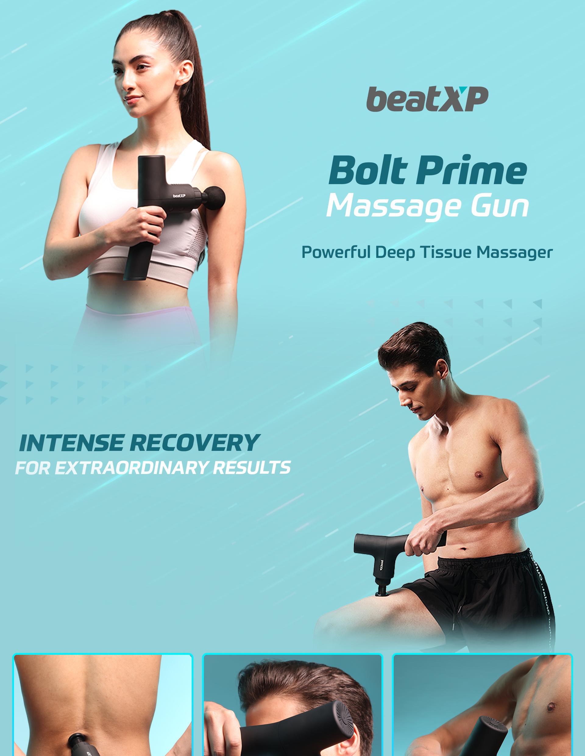 beatXP Bolt Prime Massage Gun is a powerful deep tissue massager to relieve stiffness, soreness, and pain in your body. It helps accelerate warm-up and recovery by improving flexibility and range of motion. This device has a powerful PMDC 775 motor with QuietWave Technology and 6 adjustment speed levels ranging from 1800 - 3000 RPM.