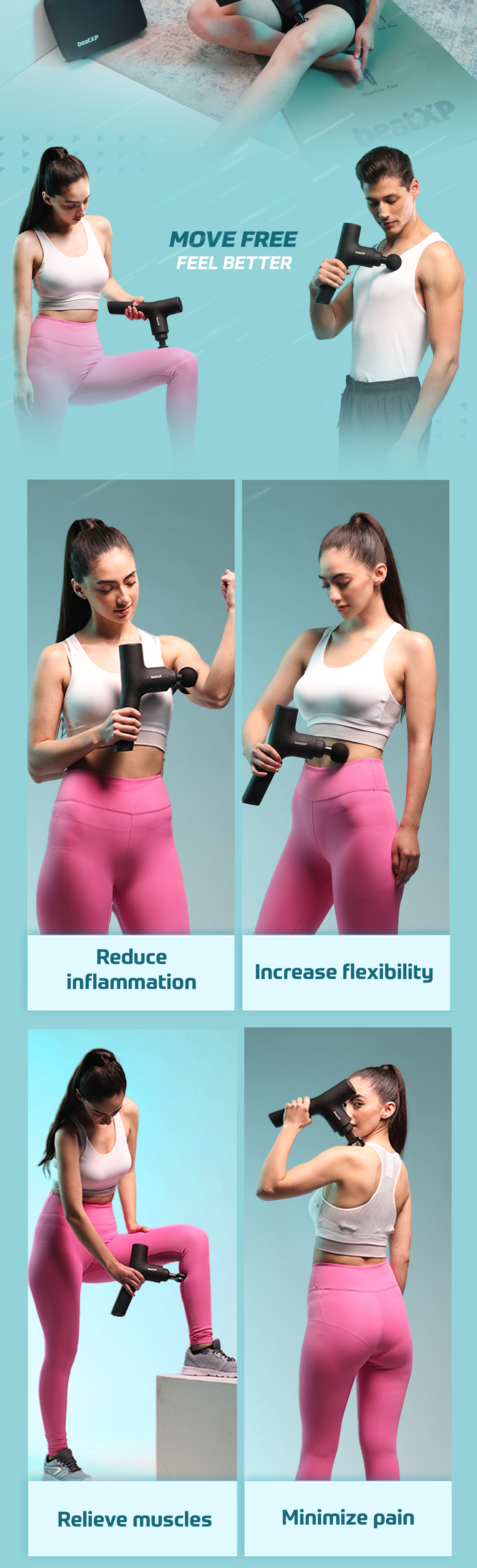 All that can be easily controlled with the one-button smart control provided at the bottom of the massager. The T-Shape double handle design of the massage gun along with its rubber grip ensures better hold, easier pressure application, and more possibilities while treating the difficult-to-reach areas ensuring less stress exerted on your hands while using the device. The handle provided is odourless, sweat-resistant and has an anti-microbial coating. The massager weighs 750gm and comes with an additional hard carrying case thus making it super easy to carry to the gym or at work.