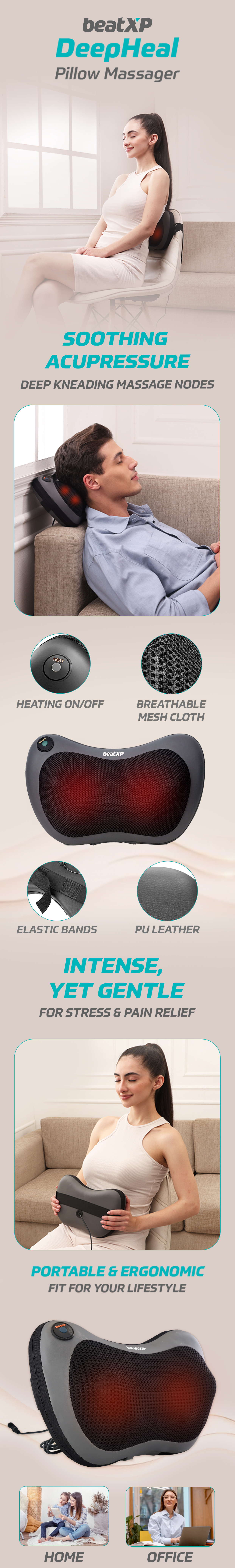 Whether you are working in the office or driving a car, the Shiatsu massage pillow will ensure relief at all times. Not just a neck massage pillow, it is a healing companion for all your discomforts including abdominal cramps. You can also get innovative with DeepHeal Massager Pillow for a comforting foot massage.