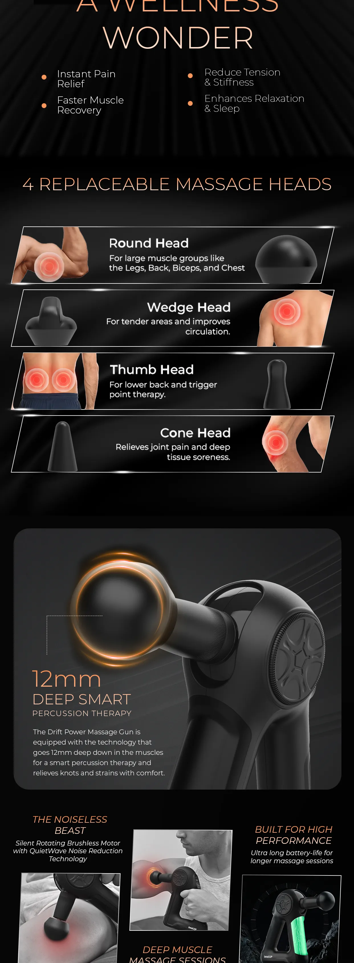Drift Power Massage Gun with 12mm Deep Massage, LCD Display, 9 Speed Modes | Black(inclusive of all taxes)