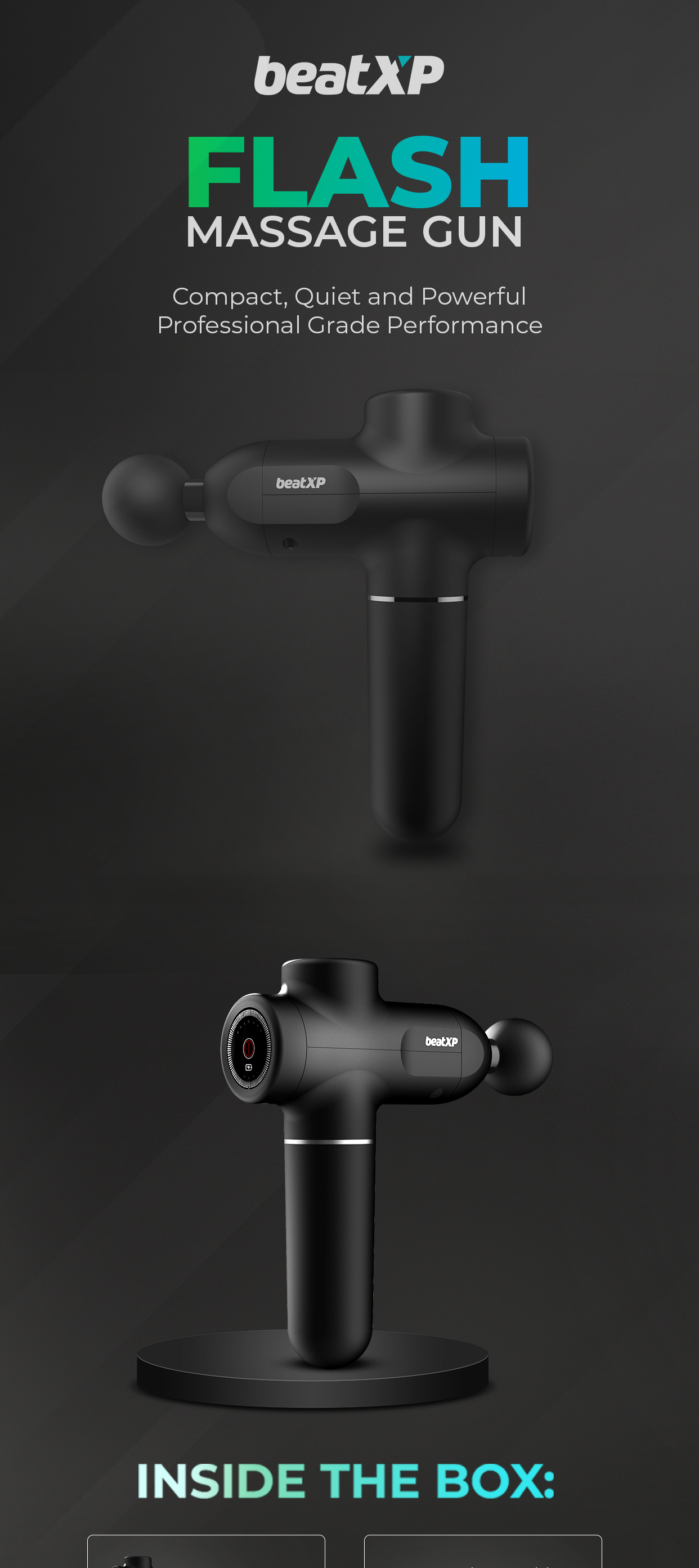 beatXP Flash Massage Gun is a powerful and compact deep tissue body massager to relieve stiffness, soreness, and pain in your body. This massager machine for pain relief helps in accelerating pain recovery by improving flexibility and range of motion. This massage gun is equipped with a powerful Brushless Motor with the new and improved QuietWave+ Technology and 6 adjustment speed levels ranging from 1800 - 3200 RPM. All that can be easily controlled with the one-button smart touch control provided at the back of this body massage machine.