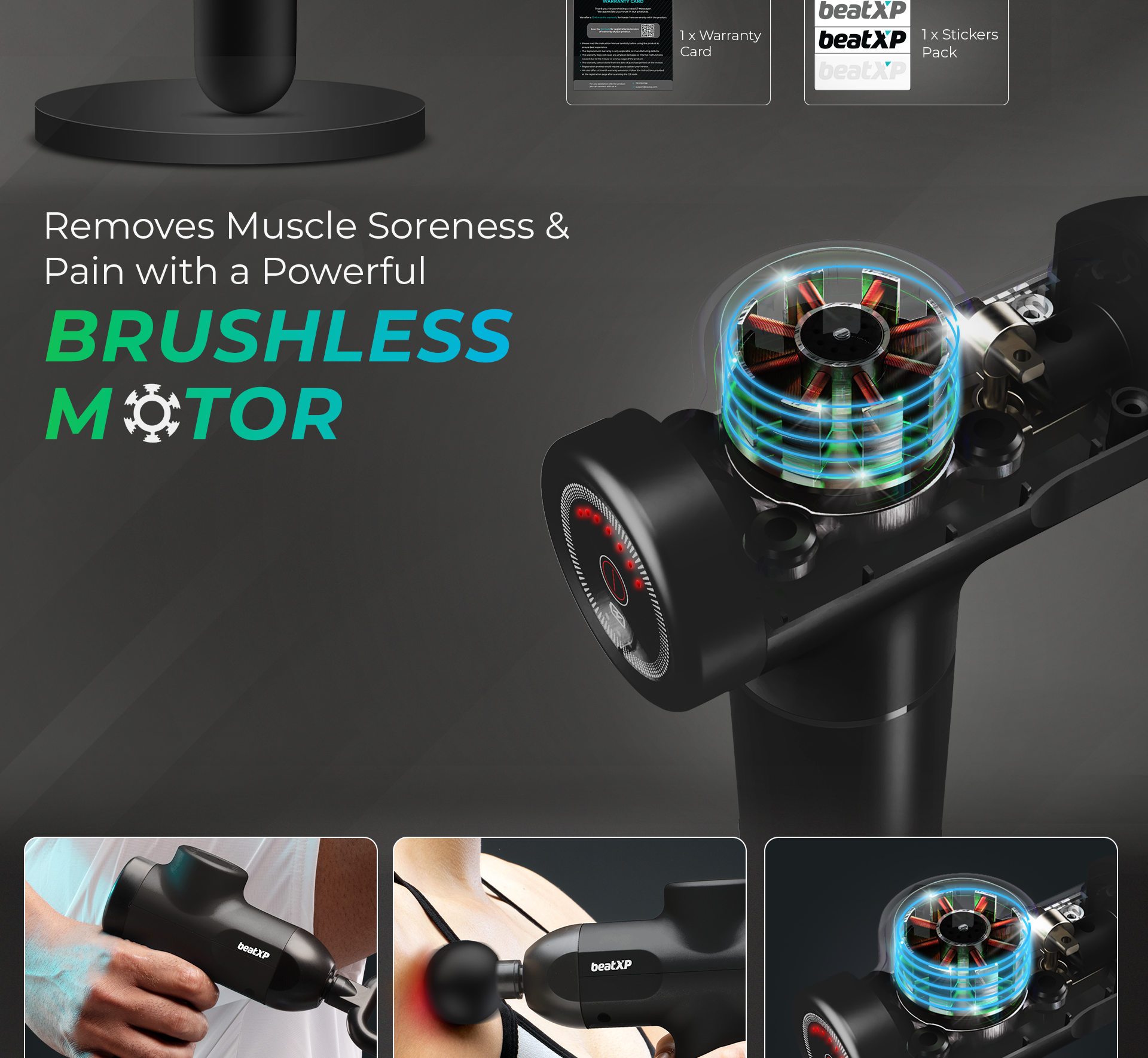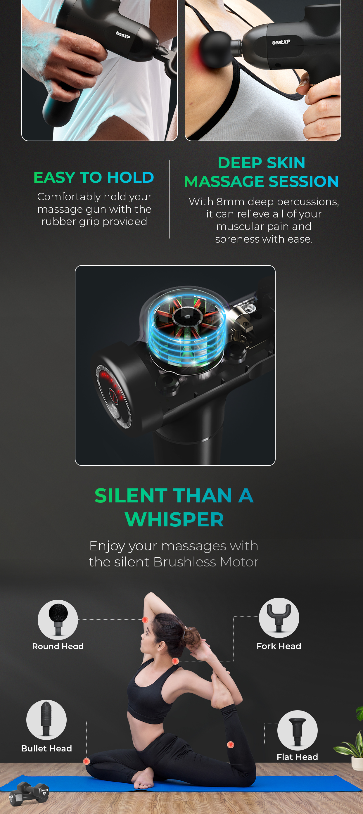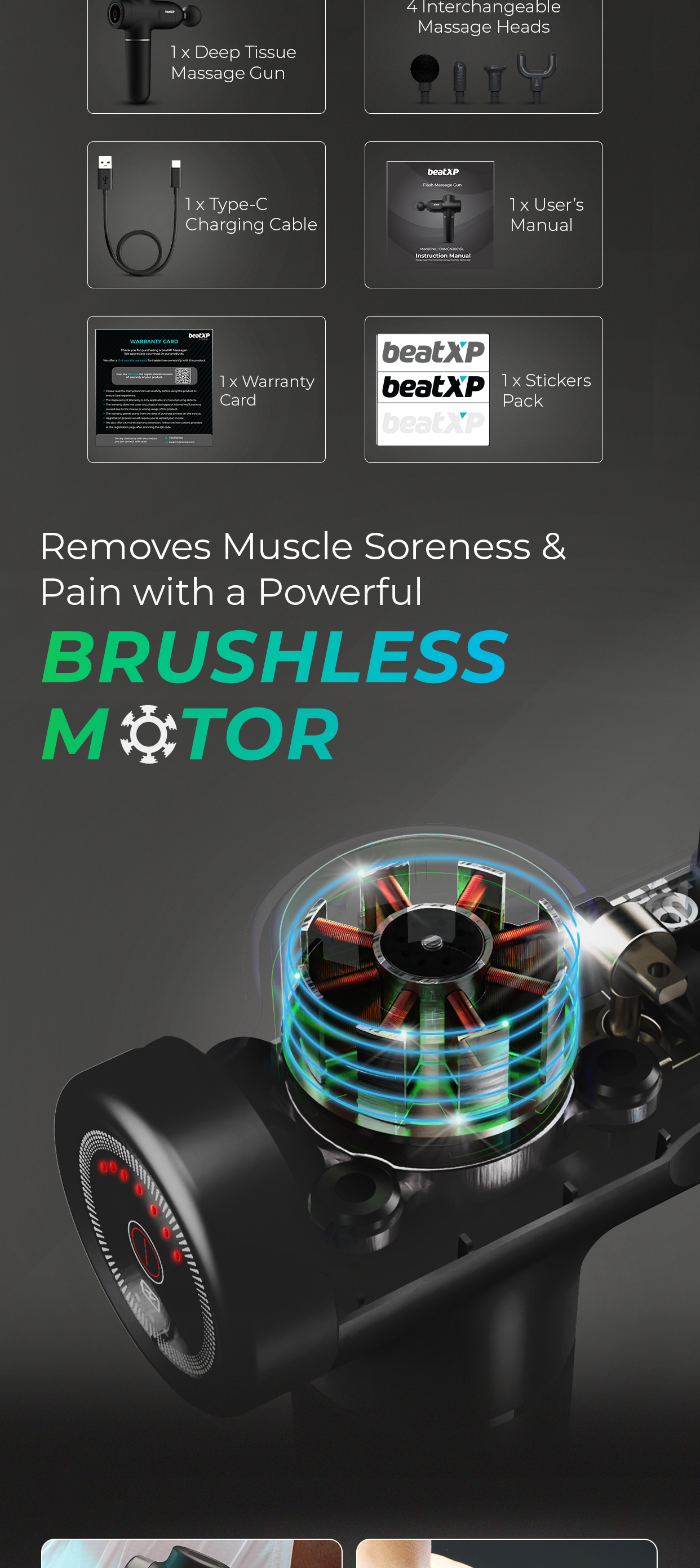 The massager machine is silent than a whisper, it’s a noiseless operation with less than 45 dB noise production even while being used at the maximum speed intensity of level 6. The 4 interchangeable massage attachments ensure that no muscle group goes untargeted and makes it the full body massage machine. The Round Head is for large muscle groups like the Legs, Back, Biceps, and Chest while the Bullet head relieves joint pain and deep tissue soreness. The Flat Head is for the wide muscle groups like Thighs, Glutes, etc and lastly, the Fork head is for Spine, Neck, and Shoulders. Hence, makes it an excellent body massager for pain relief. We provide 12 months + additional 6 months of beatXP Replacement Warranty. See box contents to avail additional 6-month warranty.