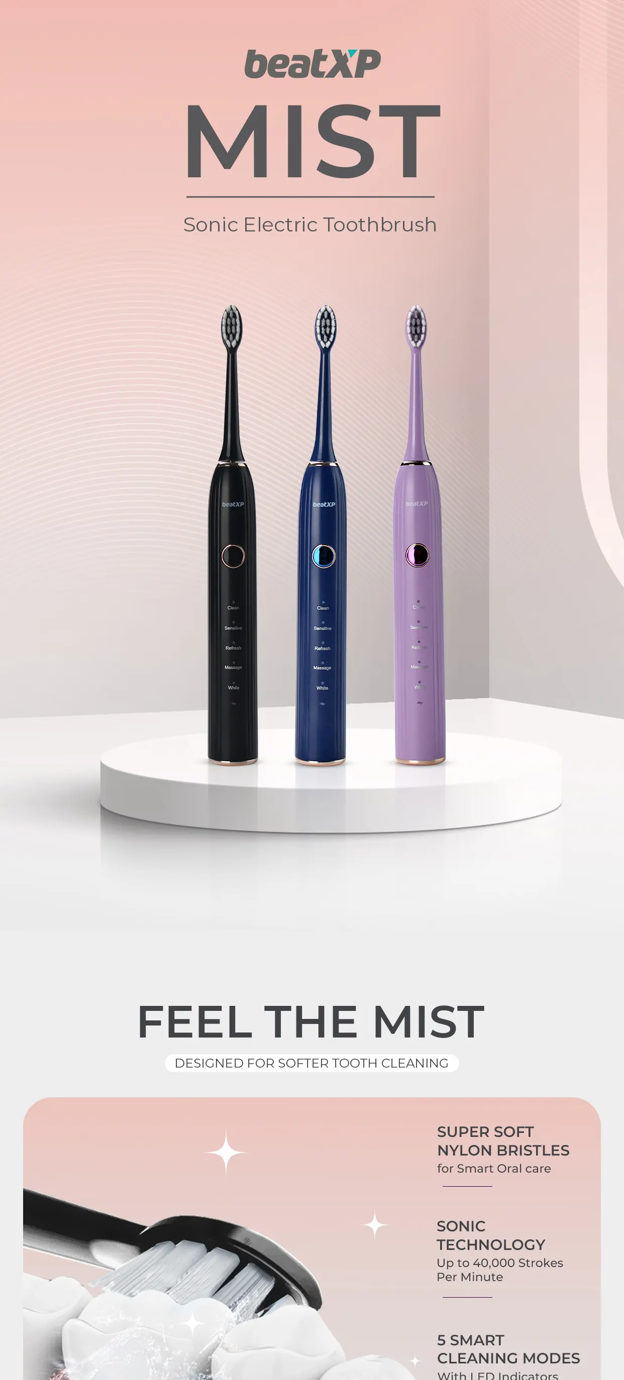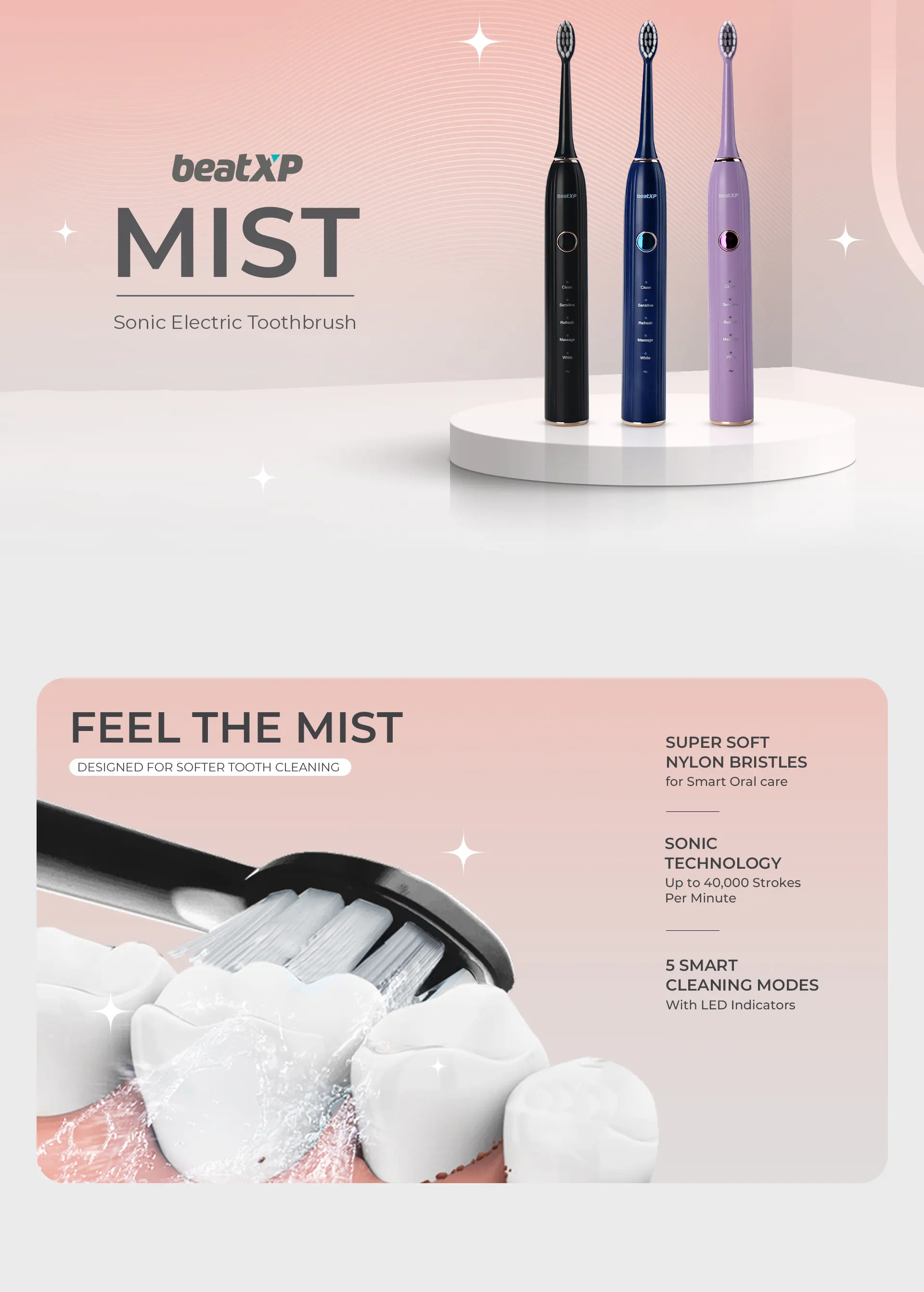 Smart Oral Care: The beatXP Mist electric toothbrush is highly effective for promoting better oral health by ensuring optimal daily oral care.