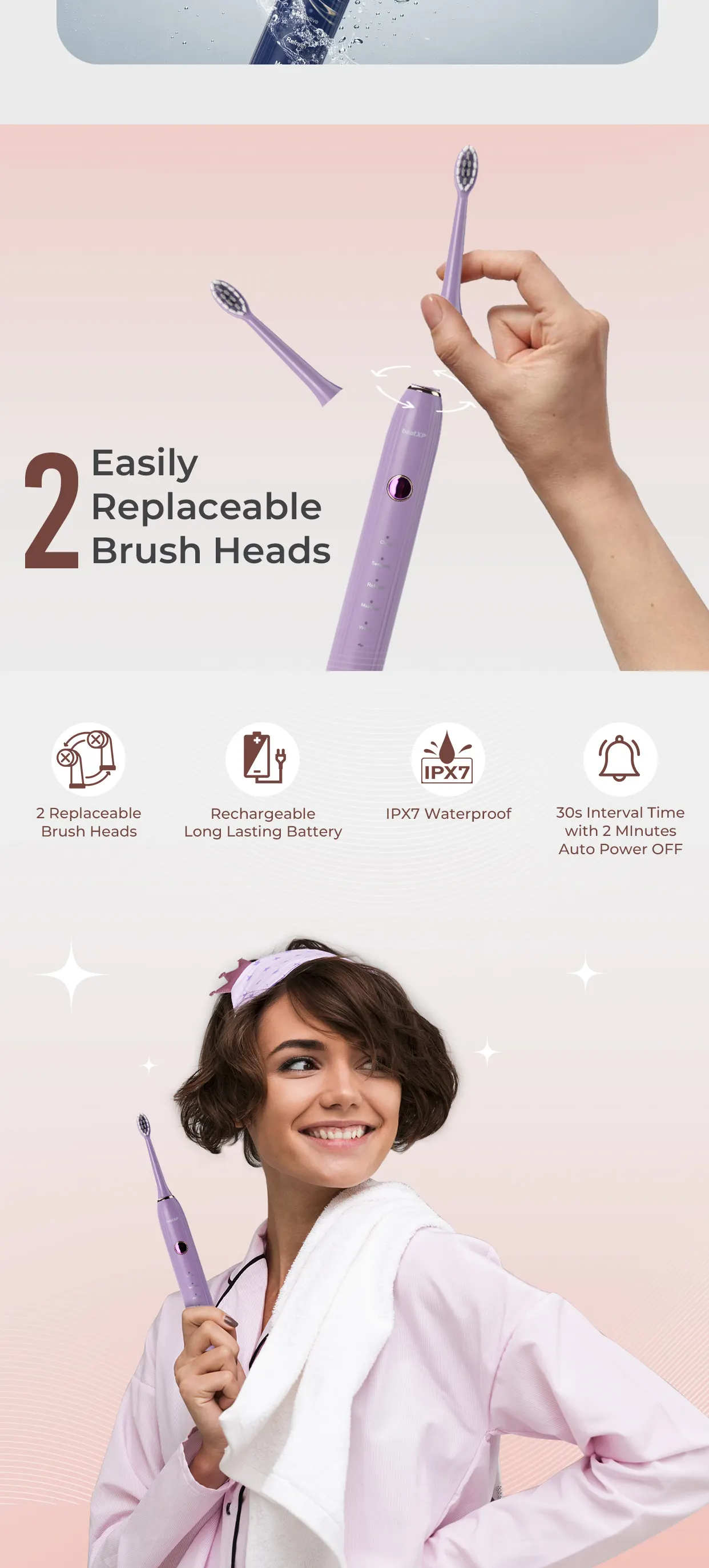 2 Replaceable Ultra Soft Bristles - Get 2 extra cleaning brush heads that will save you the trouble of ordering new ones every now and then. These brush heads have super soft bristles made of nylon that will help you clean your teeth and gums effectively, even in the hard-to-reach areas.