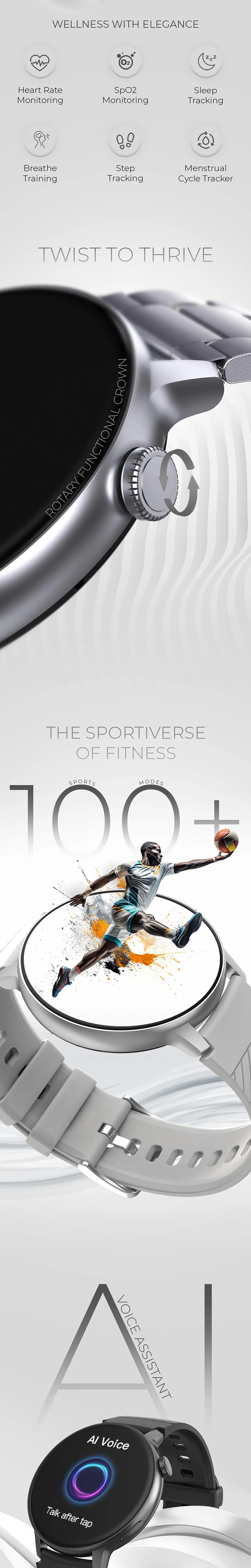 Women will appreciate the personalized menstrual cycle reminders, making Evoke Neo the ultimate smartwatch for women. The advanced AI voice assistant helps you stay on schedule and organized.