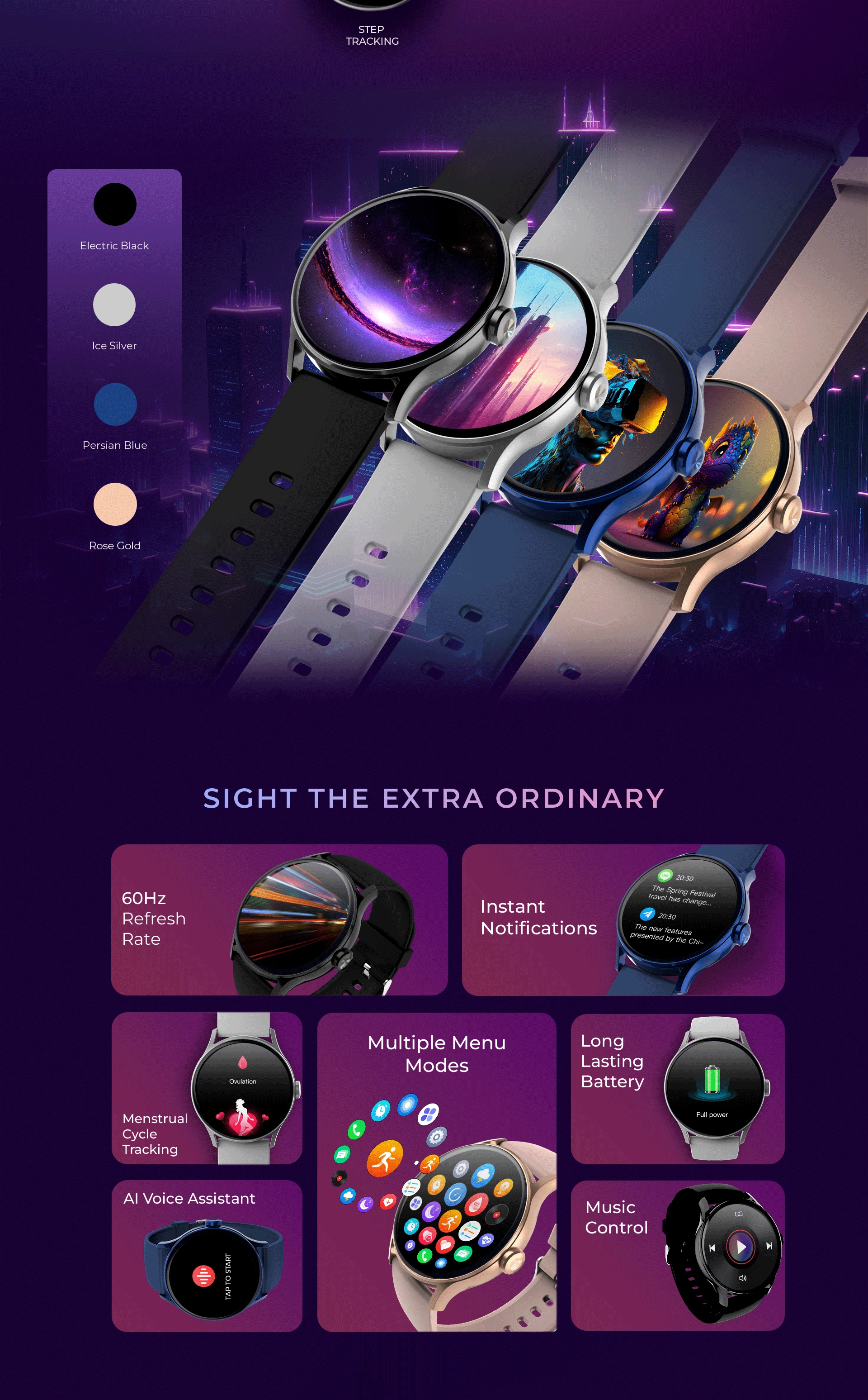 Our fitness and sports smart watch has over 100 sports modes, including yoga, swimming, and high-intensity training. It's the ultimate fitness tool for unleashing your inner athlete. Women will love the menstrual cycle reminders, exclusively designed for them.