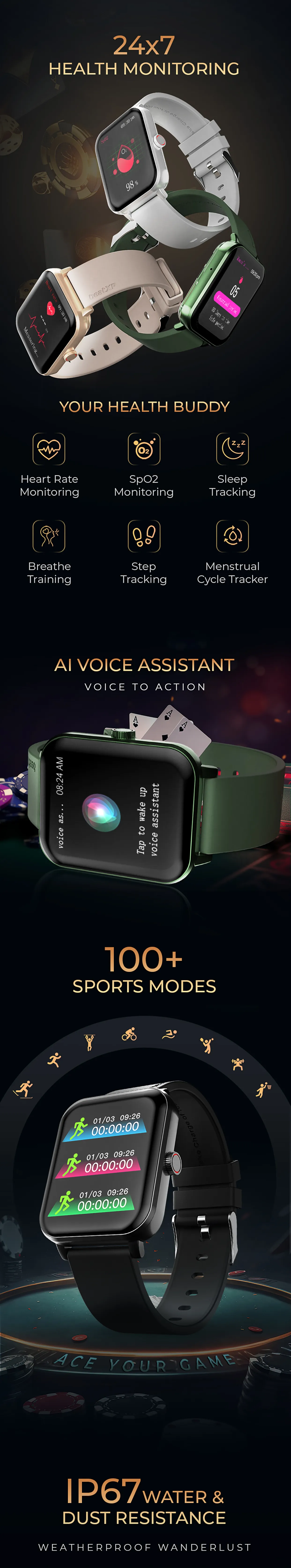 Experience the ultimate convenience with beatXP Marv Ace's innovative rotatory multifunctional crown! Effortlessly navigate various menu modes, watch faces, settings, sports modes, and more. Never be caught off guard again with the menstrual cycle reminders, exclusively designed for female users. This makes Marv Ace an excellent smart watch for women.