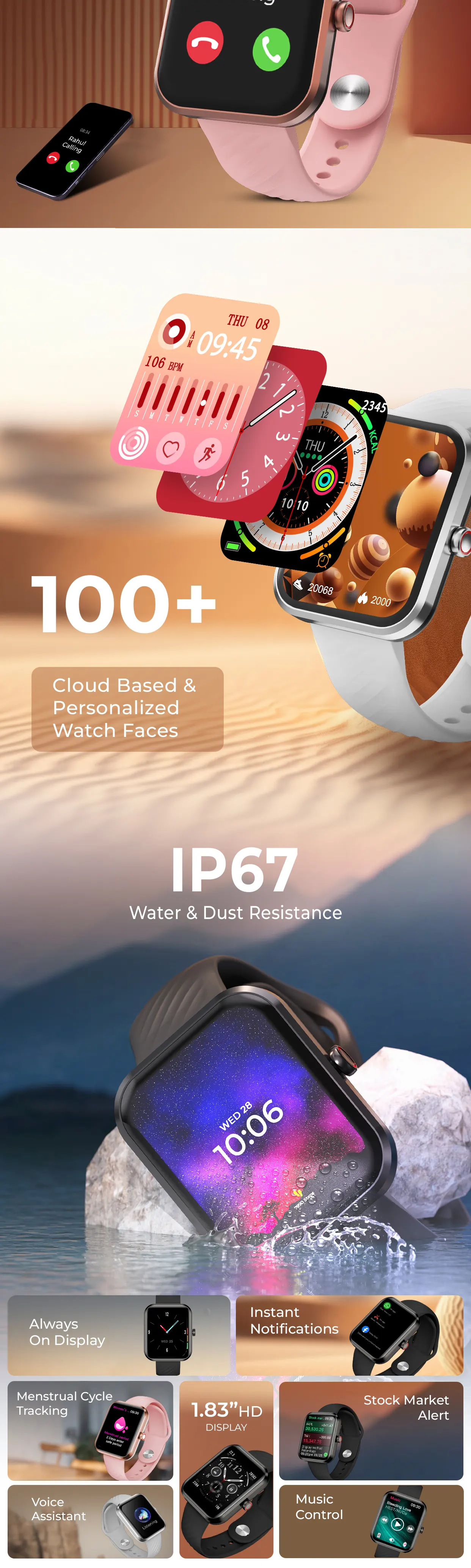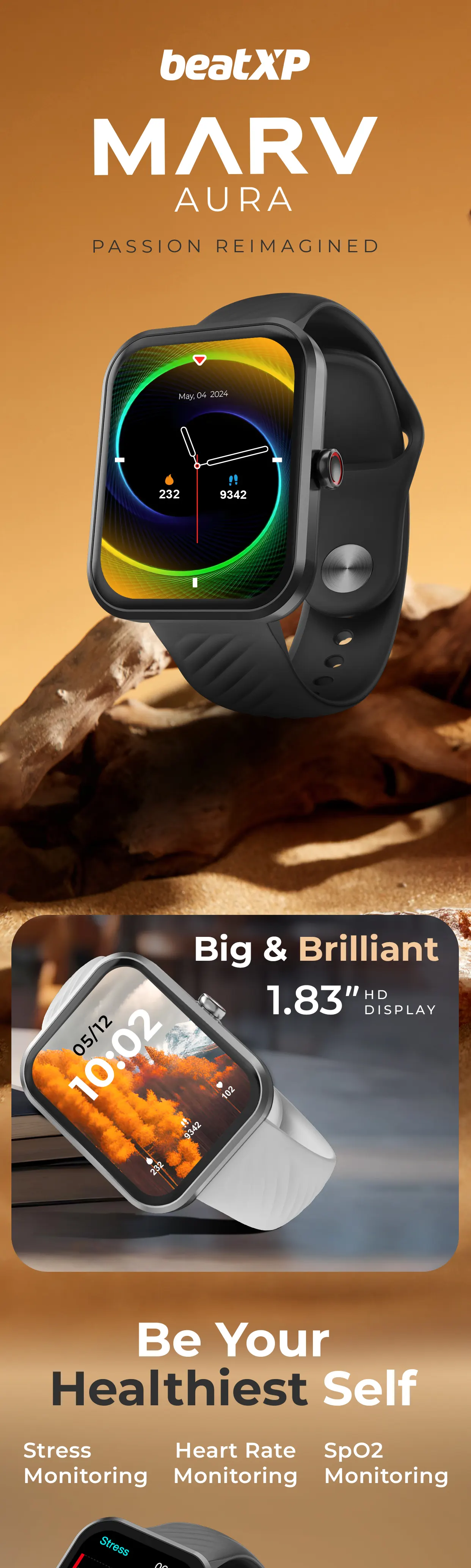 Featuring an appealing design and a classy 1.83" HD Display, Marv Aura is not just about looks, it packs a punch far greater than its size! This smartwatch is the perfect companion for your busy lifestyle.