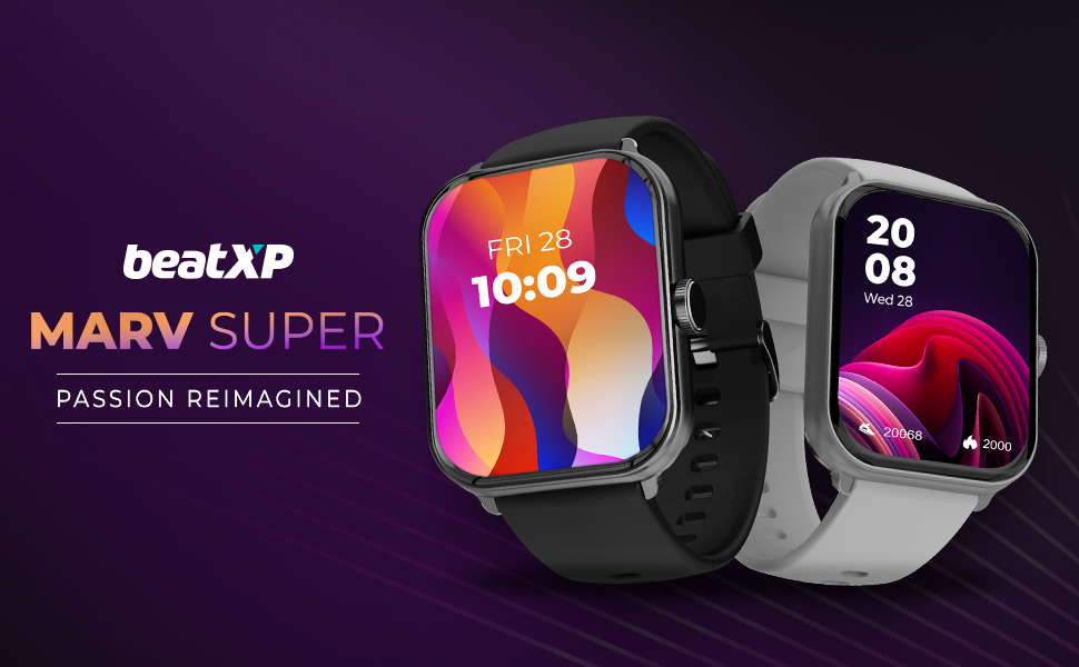 Redefine your Passion for fashion and fitness with beatXP Marv Super smart watch. From large screen size to body vitals tracking, beatXP Marv Super would make your experience MARVELLOUS with smartwatch. Get connected to your loved ones with the seamless bluetooth calling and redefine your passion for technology. Take charge of your body with the beatXP Marv Super smart watch. For hassle-free warranty and product support, please contact our customer care team at support@beatxp.com.