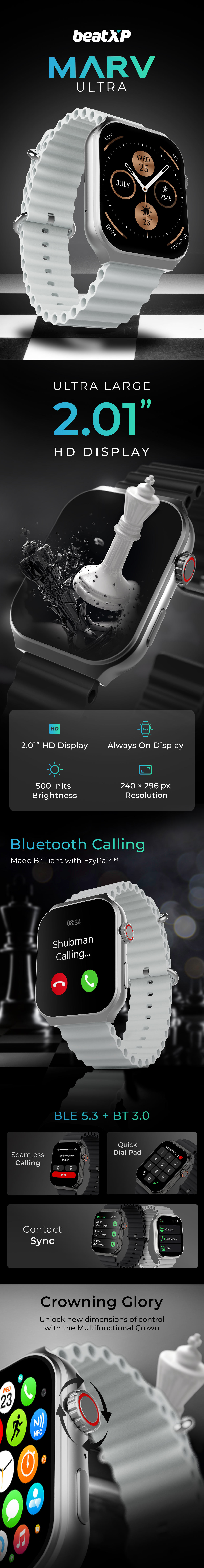 Marv Ultra Smartwatch with 2.01” HD Always On Display, Bluetooth Calling & Metal body-Silver(inclusive of all taxes)