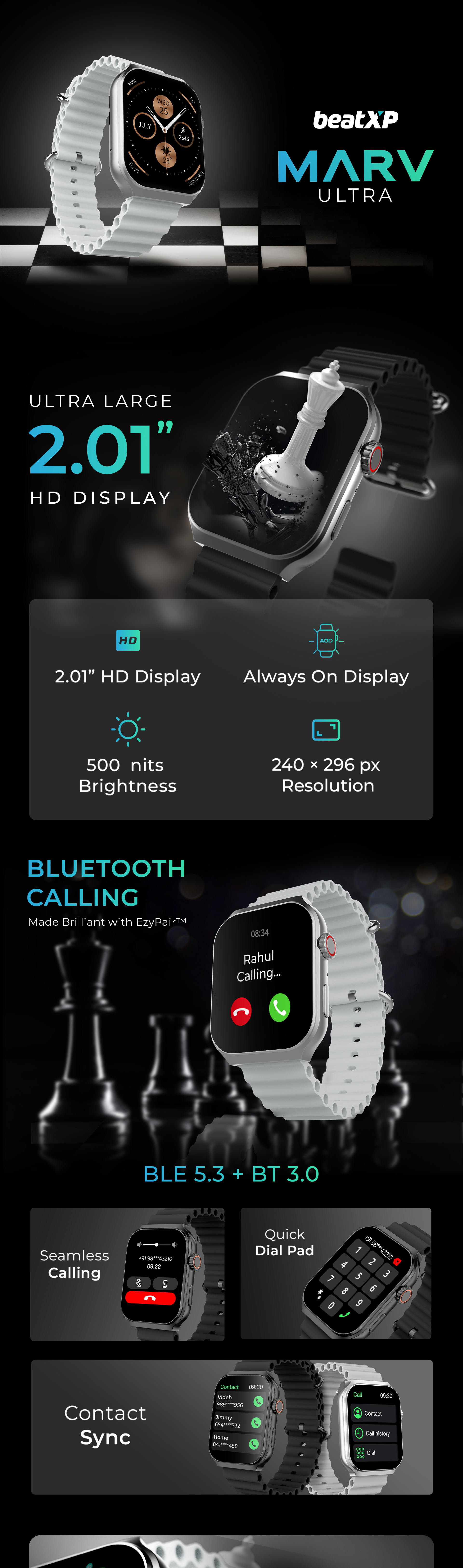 The Marv Ultra smartwatch boasts an attractive design and a stylish 2.01" HD Display. But it's not just about looks - it's also packed with features that make it an ideal companion for your busy lifestyle.