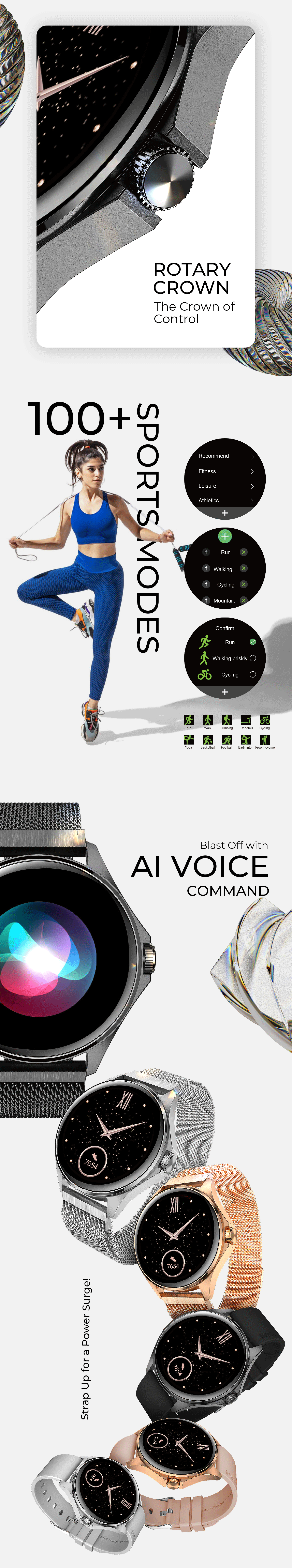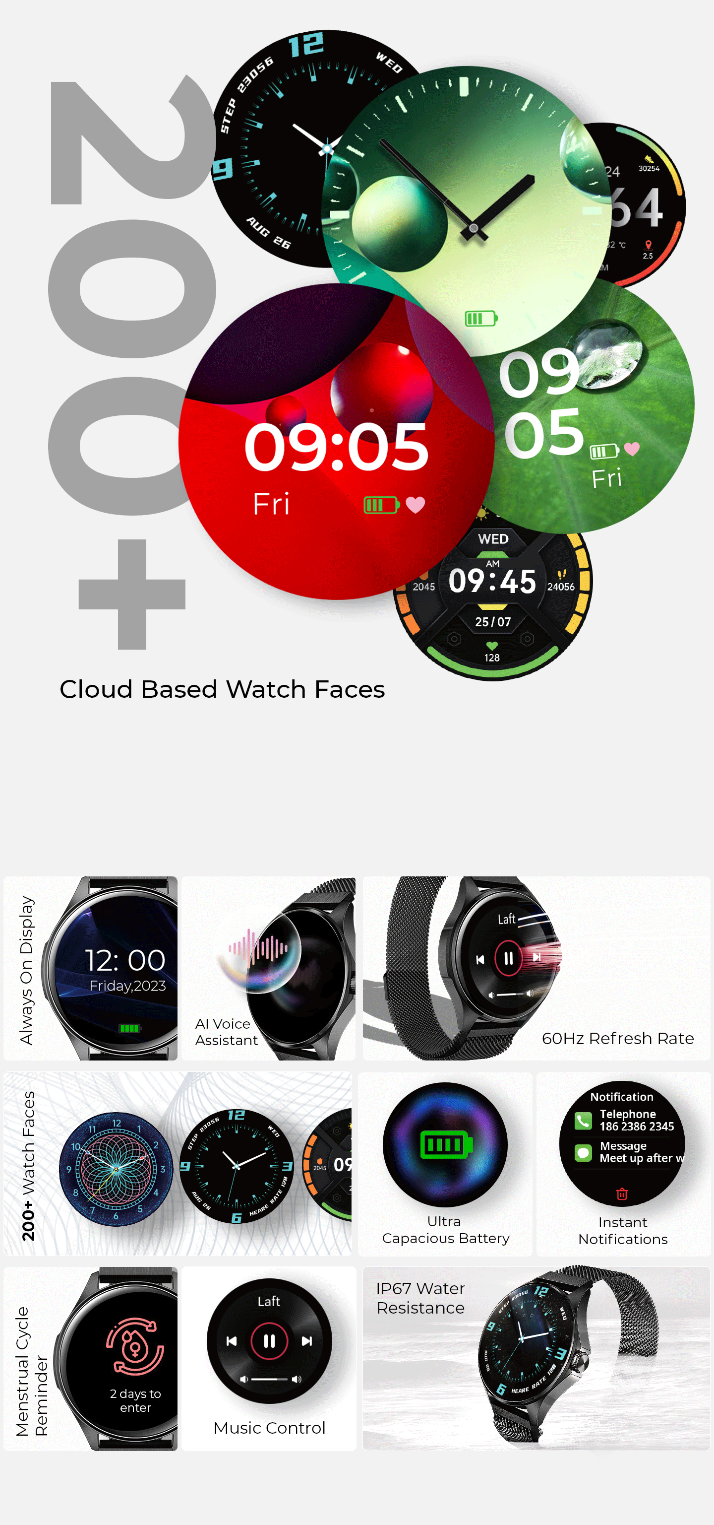 Stay organized with our AI voice assistant and never worry about battery life as Nuke is fast wirelss charging and long-lasting battery smartwatch. Express yourself with our selection of 200+ cloud-based watch faces and take control of your music experience with our music control feature.