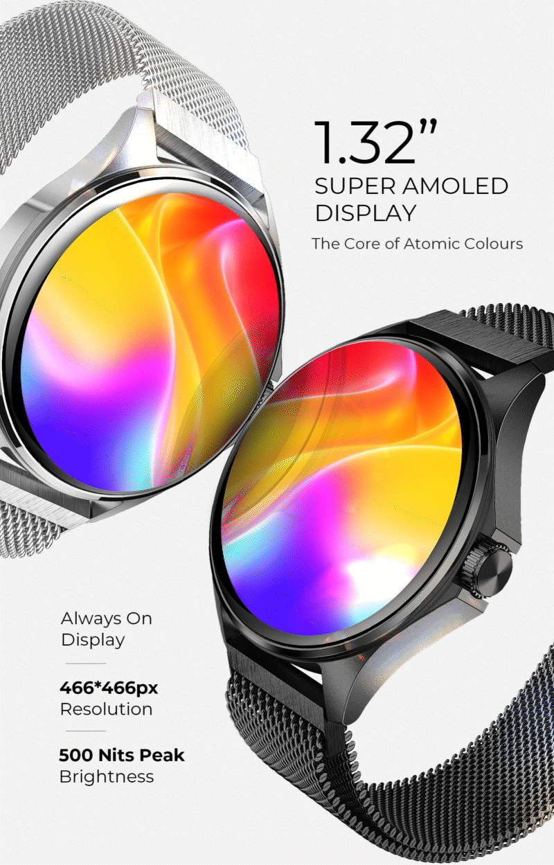 Experience luxury and versatility with our advanced beatXP Nuke - 1.32” Super AMOLED smart watch with Always On Display and 500 Nits peak brightness.