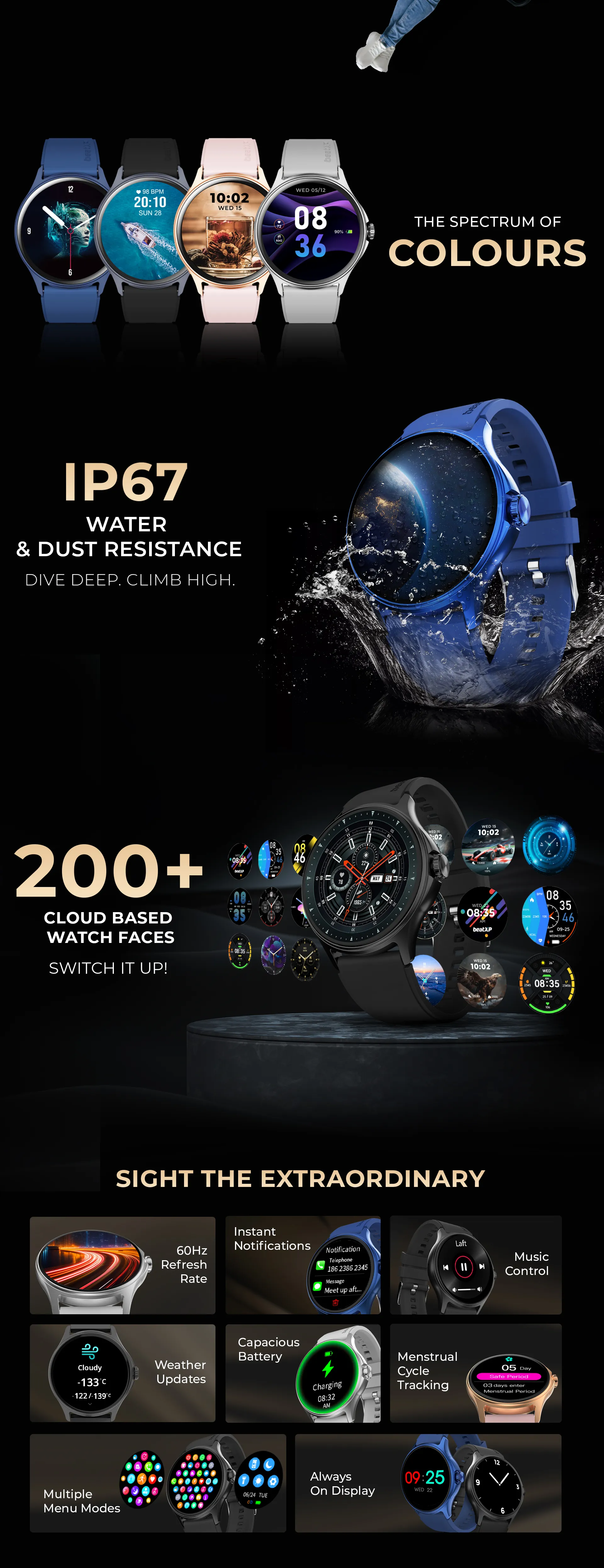 The beatXP Sigma is also your personal wellness coach, monitoring your heart rate, sleep patterns, SpO2, and more 24/7. It's water-resistant up to IP67, so you don't have to worry about spontaneous adventures or swims. With 100+ sports modes and an exclusively designed menstrual cycle reminder feature, it's a perfect smartwatch for women.