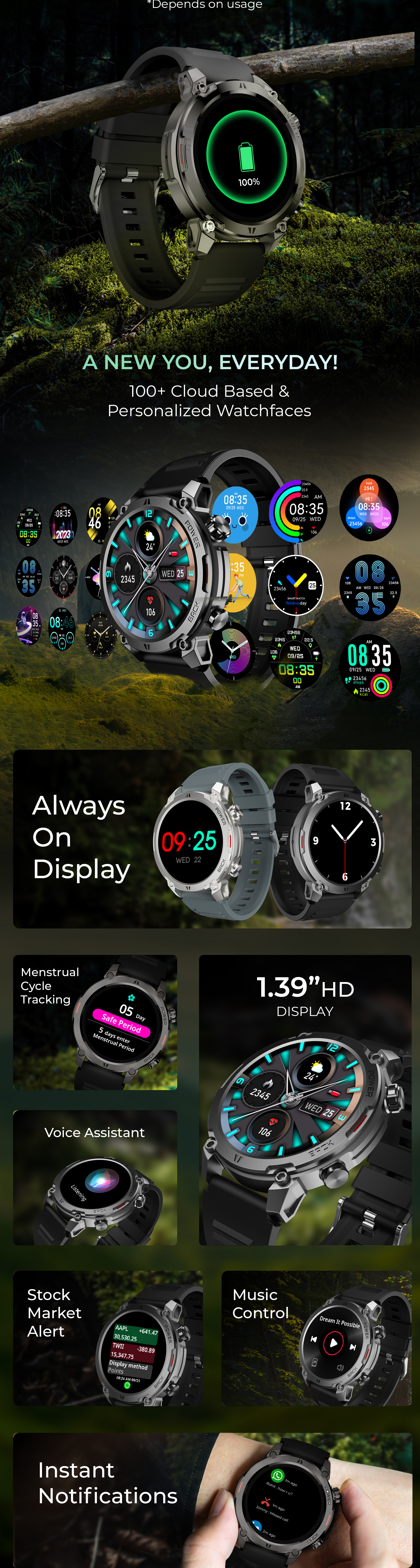 Packed with features designed to elevate your daily life, Terra features an excellent 1.39” ultra hd display that provides stunning visuals, and brings every detail to life perfectly. Terra is designed to be the best smartwatch for men and women both.