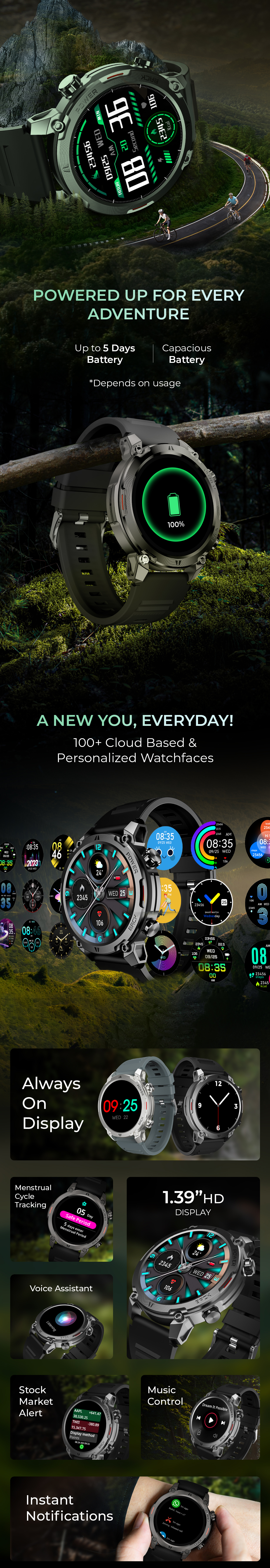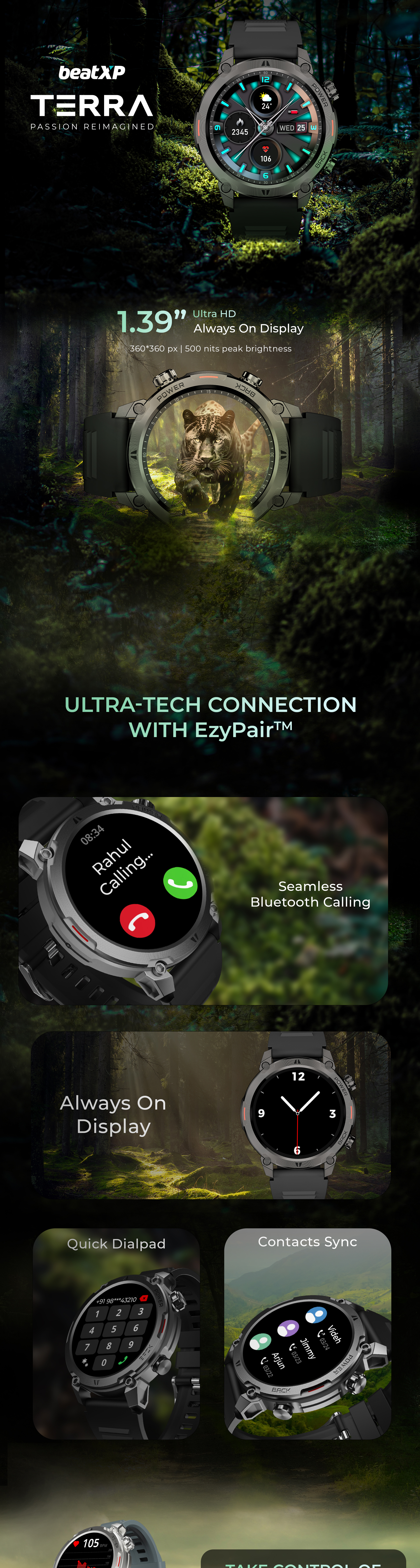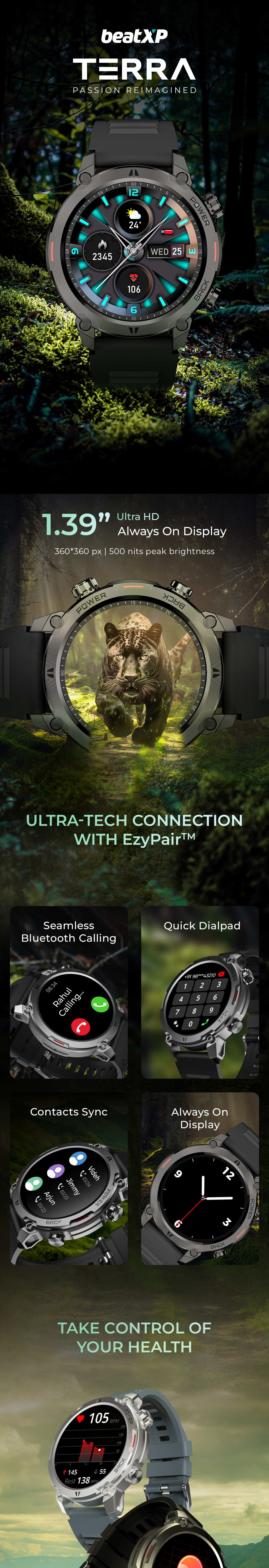 Packed with features designed to elevate your daily life, Terra features an excellent 1.39” ultra hd display that provides stunning visuals, and brings every detail to life perfectly. Terra is designed to be the best smartwatch for men and women both.
