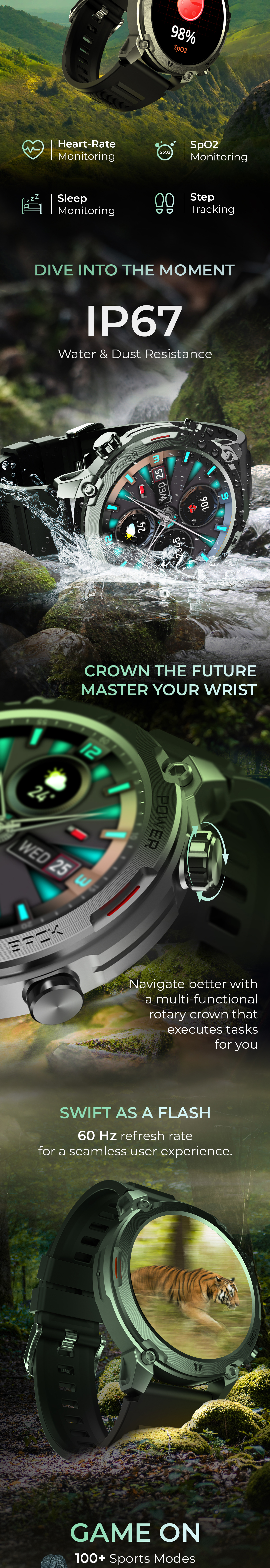 The high-resolution display is perfect for reading messages, social media updates, or even making calls.The smart watch is tough and sturdy, sleek and stylish at the same time. Terra offers an unmatched user experience with 60 Hz refresh rate.