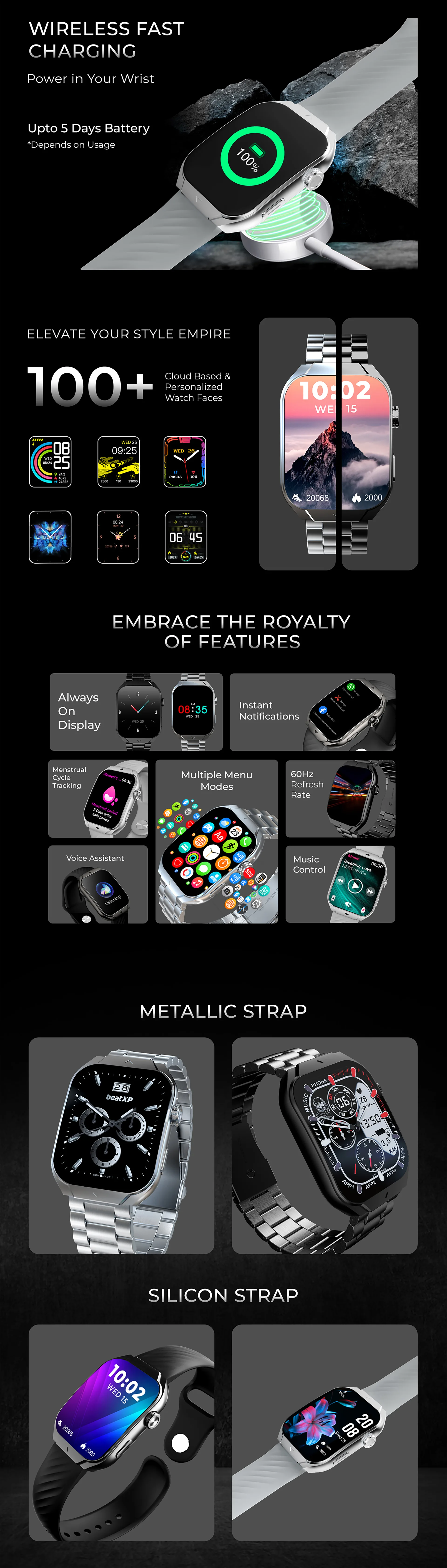 Unbound Curv Smartwatch - 1.96” 3D Curved Amoled Display, Bluetooth Calling, Metal Body and Metal Strap- Black(inclusive of all taxes)