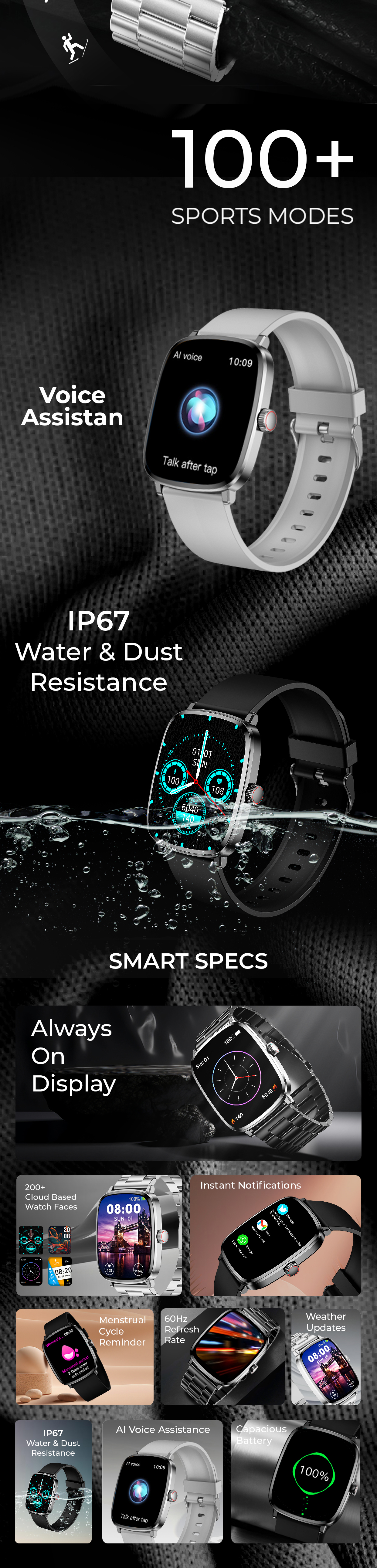 The EzyPair™ Technology feature allows for seamless communication via Advanced Bluetooth calling, without requiring a phone. It has a comprehensive 24/7 tracking system that monitors essential indicators such as heart rate, sleep patterns, SpO2 levels, and even menstrual cycle reminders.