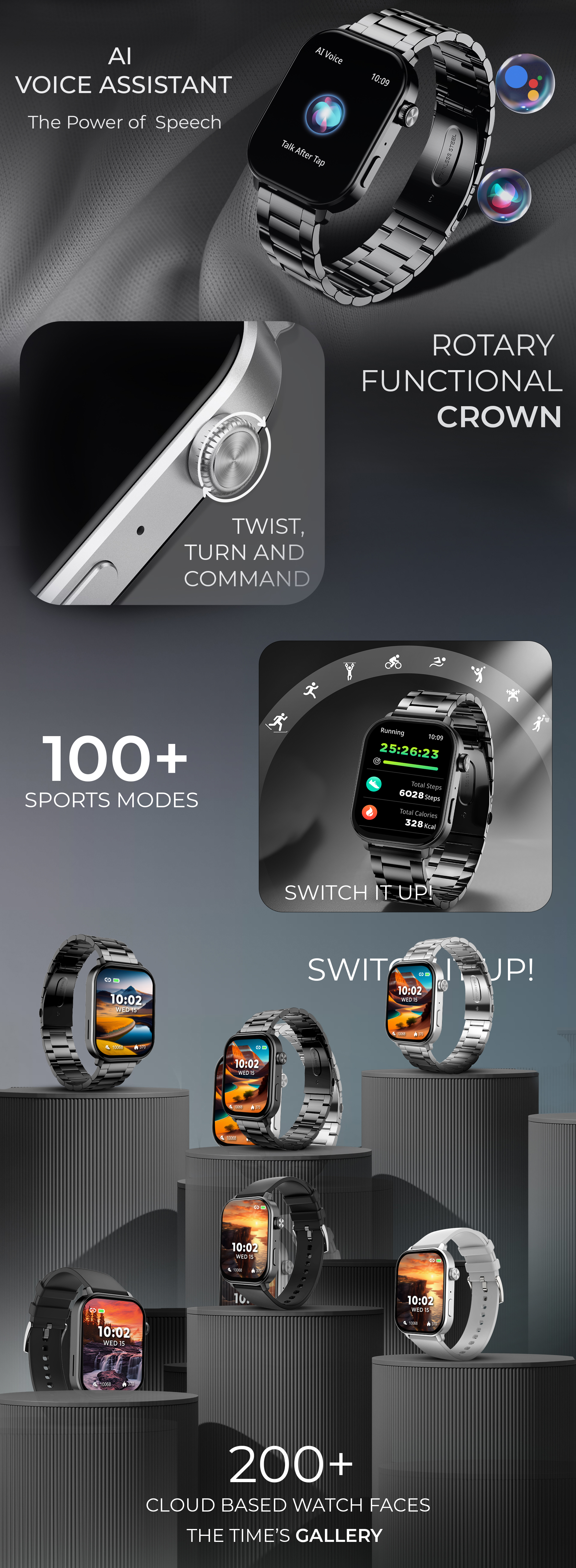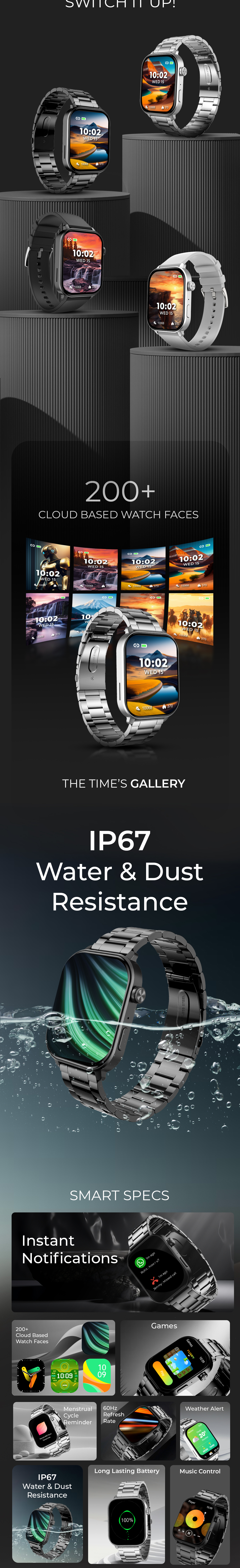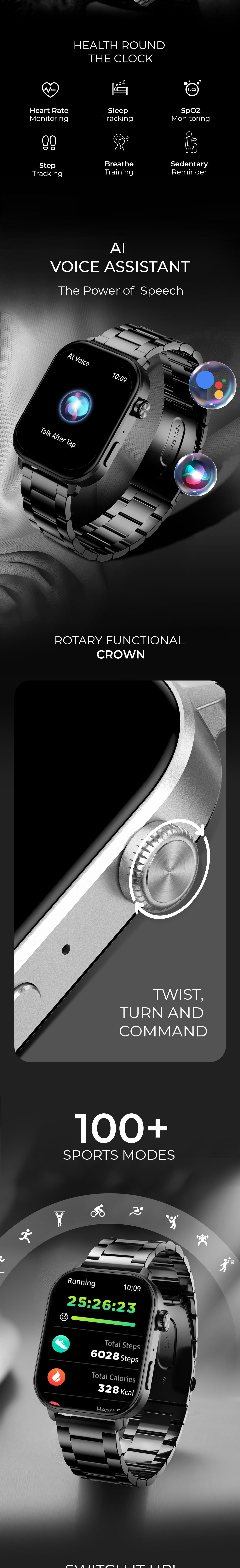 This bluetooth calling smart watch is equipped with EzyPair™ Technology that makes managing calls a breeze, allowing you to answer calls from your wrist without the hassle of juggling your phone. The powerful monitoring system checks vital health factors like heart rate, sleep patterns, SpO2 levels, and menstrual cycle reminders, making it easy for you to stay in control of your health and make informed decisions that improve your well-being.