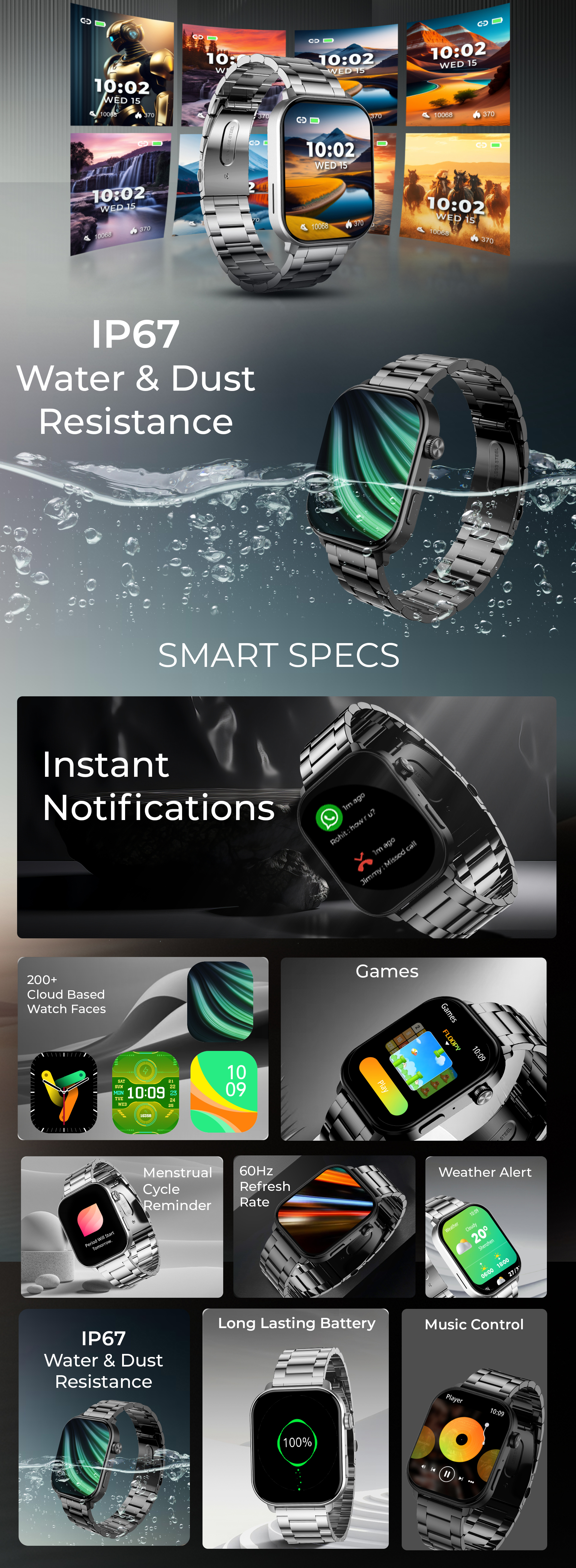 This bluetooth calling smart watch is equipped with EzyPair™ Technology that makes managing calls a breeze, allowing you to answer calls from your wrist without the hassle of juggling your phone. The powerful monitoring system checks vital health factors like heart rate, sleep patterns, SpO2 levels, and menstrual cycle reminders, making it easy for you to stay in control of your health and make informed decisions that improve your well-being.