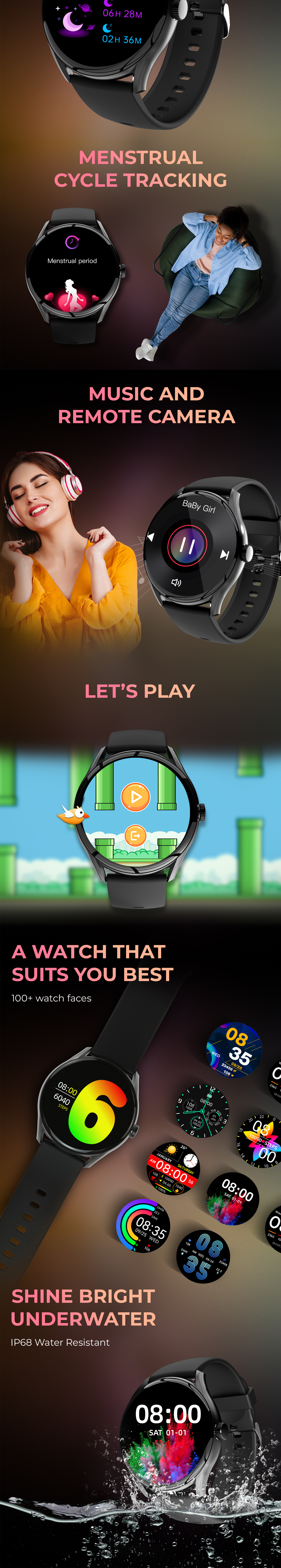 Our advanced AI technology provides a trustworthy companion to assist with tasks, answer inquiries, and organize schedules. An AI voice assistant is available for help whenever needed. Plus, Our cloud-based technology offers over 200 watch faces to choose from, giving users a wide range of options to suit their mood, outfit, or desired aesthetic.