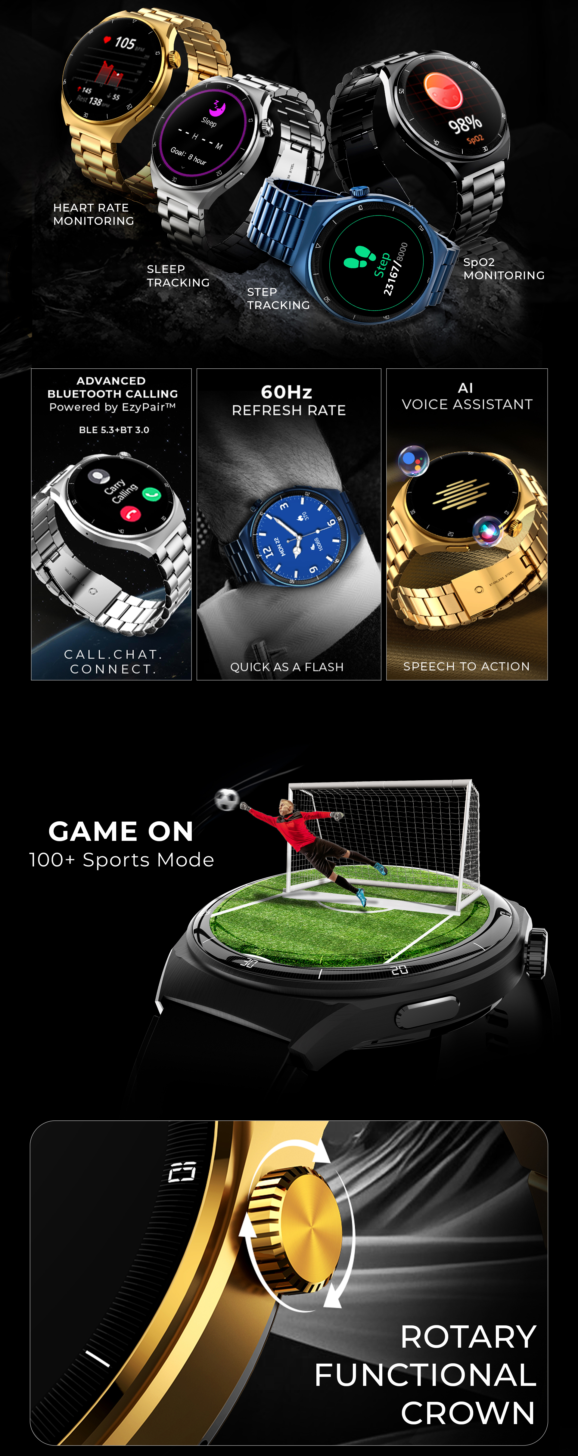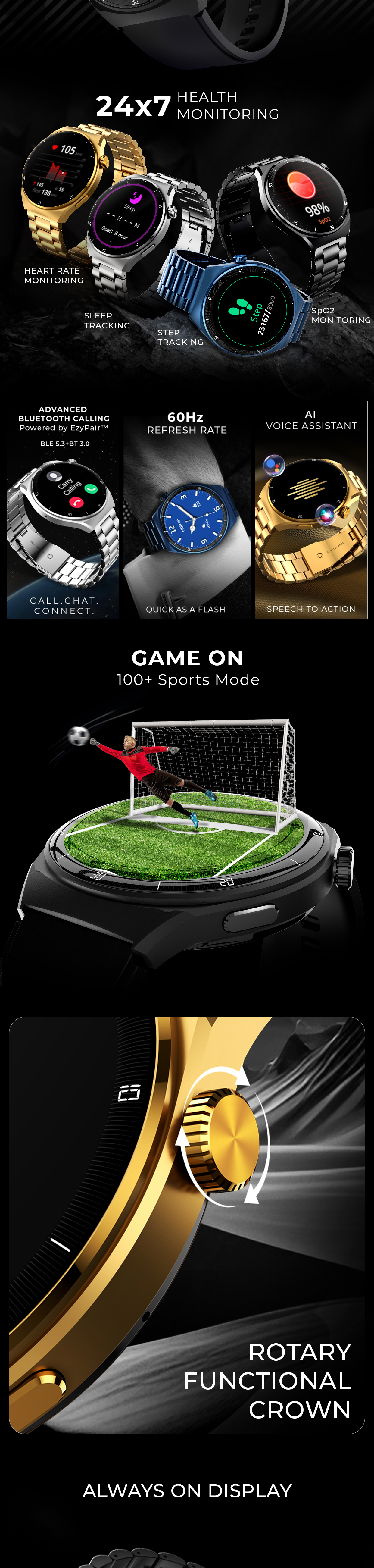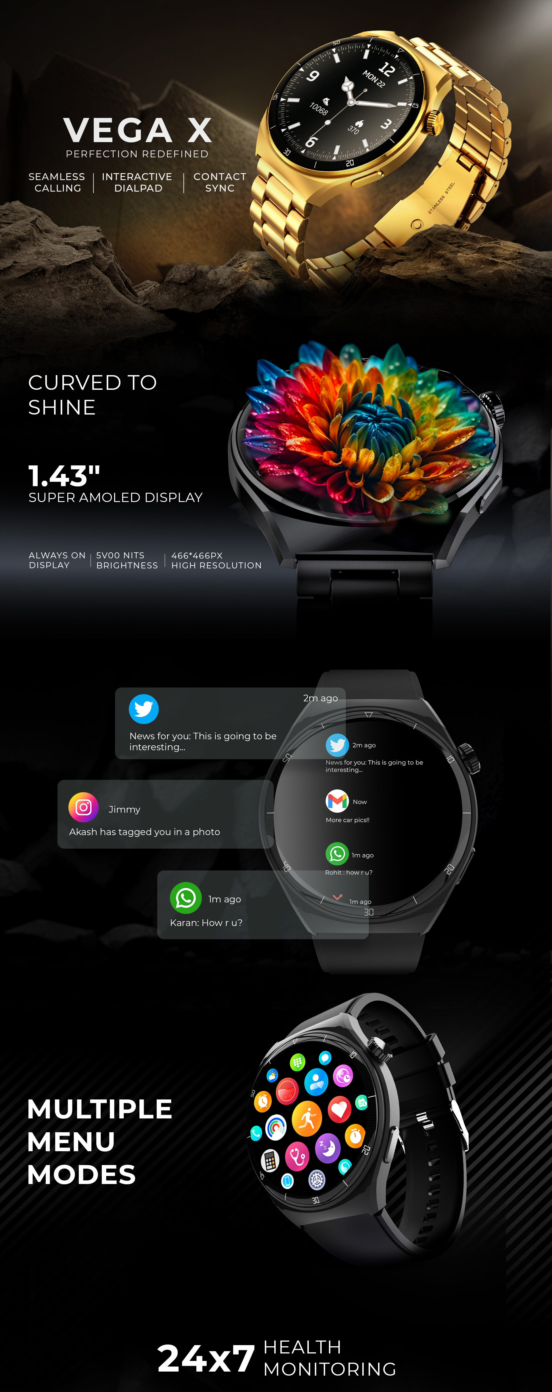 Vega X Smartwatch with 1.43” Round AMOLED Display & BT Calling - Black Metal Chain(inclusive of all taxes)