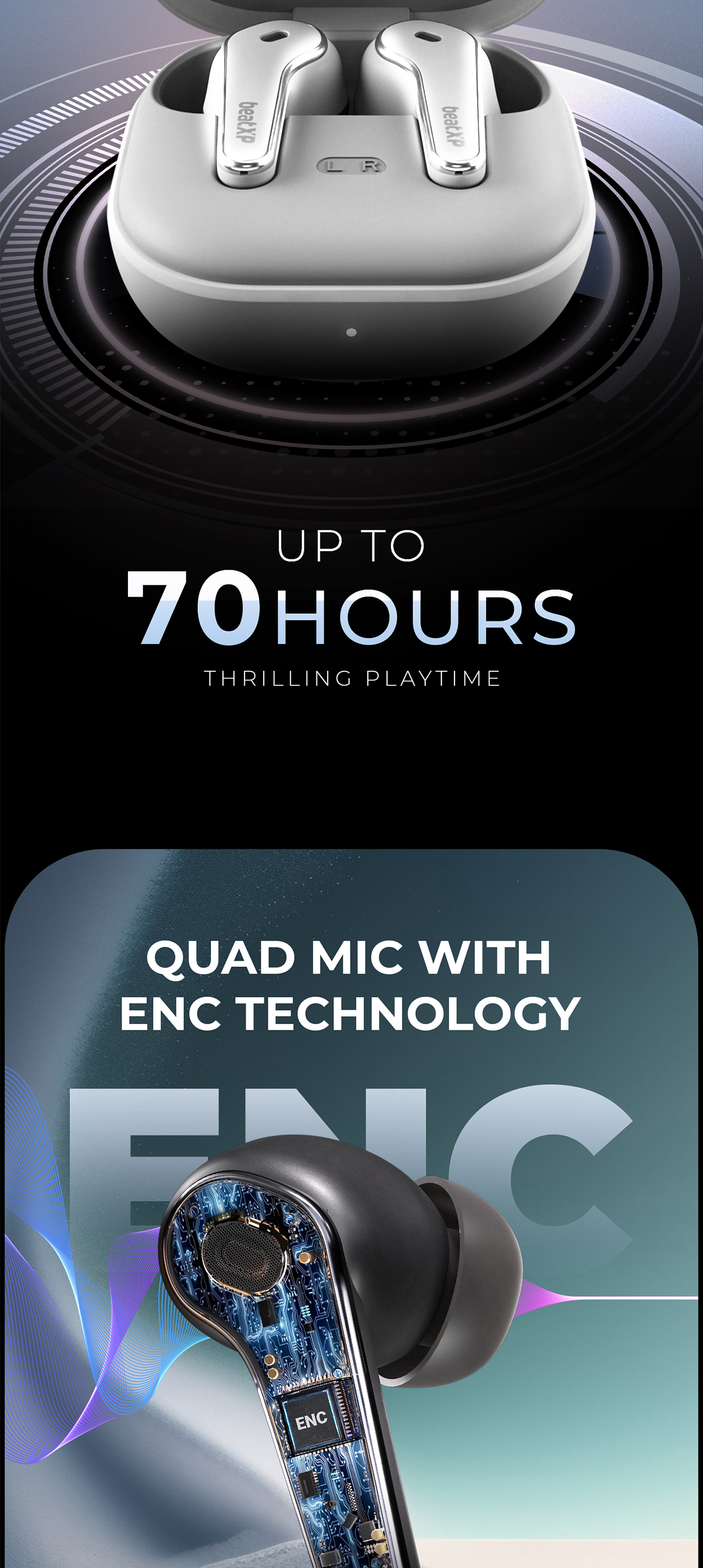 The beatXP Echo XPods are an excellent choice for anyone who seeks earbuds that deliver exceptional sound quality, extended battery life, and uncompromised performance. These ear buds offer an impressive 70 hours of playtime, ensuring you can enjoy your music for days on end without having to charge them.