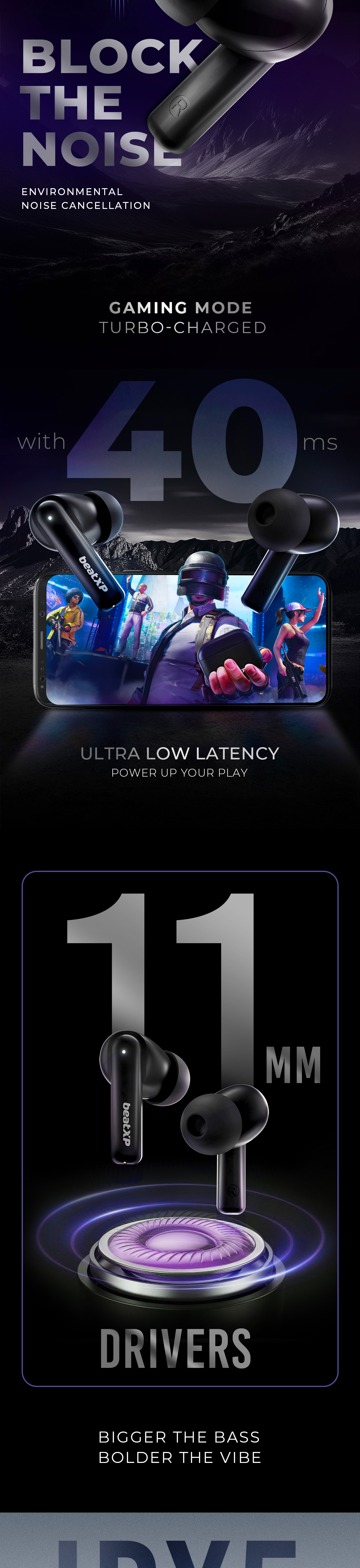 Experience the ultimate sound with the beatXP Vibe XPods Bluetooth earbuds! With an incredible 60 hours of playtime on a single charge, you can enjoy your favourite tunes all day long. The gaming mode features a 40ms low latency for lag-free entertainment, taking your gaming experience to the next level.